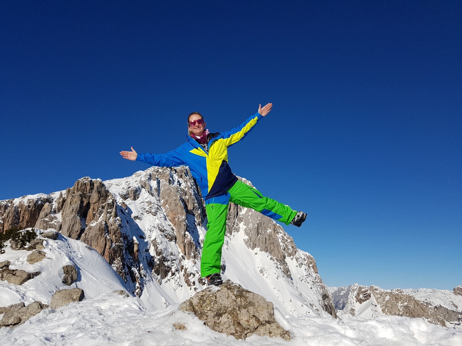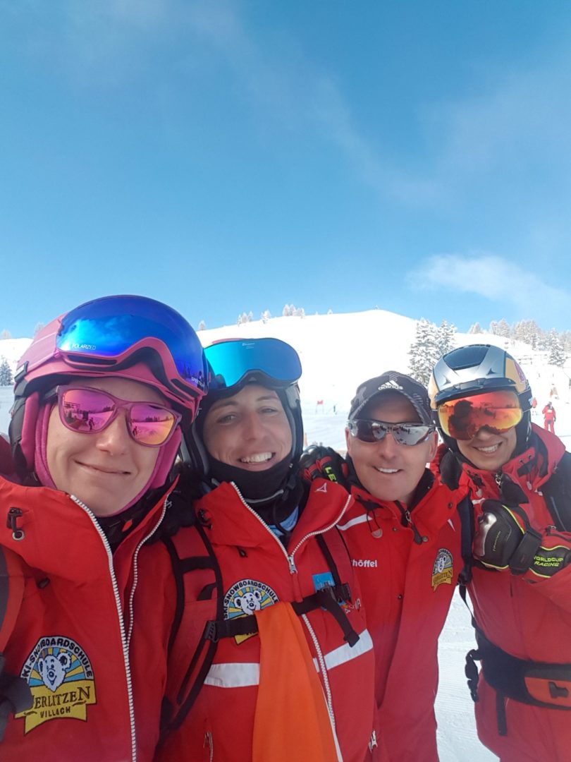 Irgendwie, irgendwo, irgendwann ergab es sich eben (eigentlich total logisch), dass ich plötzlich Skilehrerin war und es bis heute noch mit großer Leidenschaft bin. Ein nicht ganz unwichter Grund, warum ich diesen „Nebenjob“ so liebe, ist meine Winterfamilie. Als Skileher arbeiten wir dort, wo andere Urlaub machen. Das Besondere in unserer Skischule ist, dass wir immer einander helfen, füreinander da sind, Freud & Leid teilen (es gibt nicht nur Sonnentage), gut zusammen funktionieren und unsere Chefs auch noch mögen – und ich denke, sie uns auch 😀 Und genau deshalb macht das Arbeiten auch bei -32°C noch „Spass“.